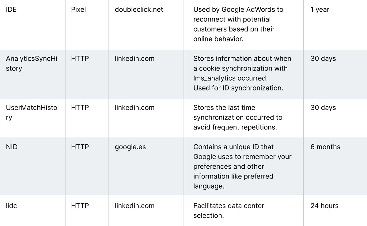 These are cookies that are sent to the user’s terminal from a device or domain that is not managed by the publisher but by another entity that processes data obtained through cookies.