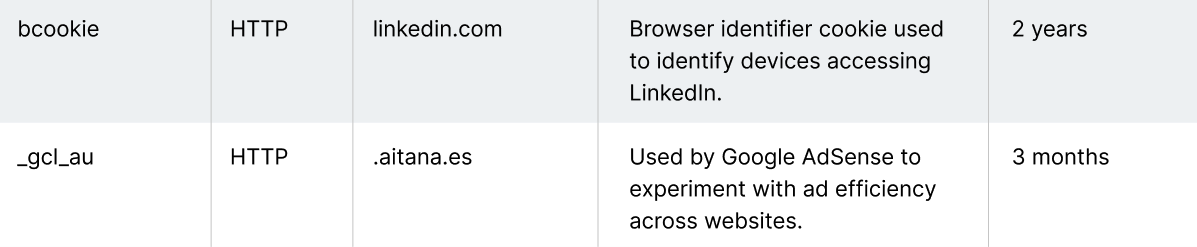 AITANA MANAGEMENT, S.L. is not responsible for the content or the accuracy of the privacy policies or terms of use of third-party entities mentioned in this policy.